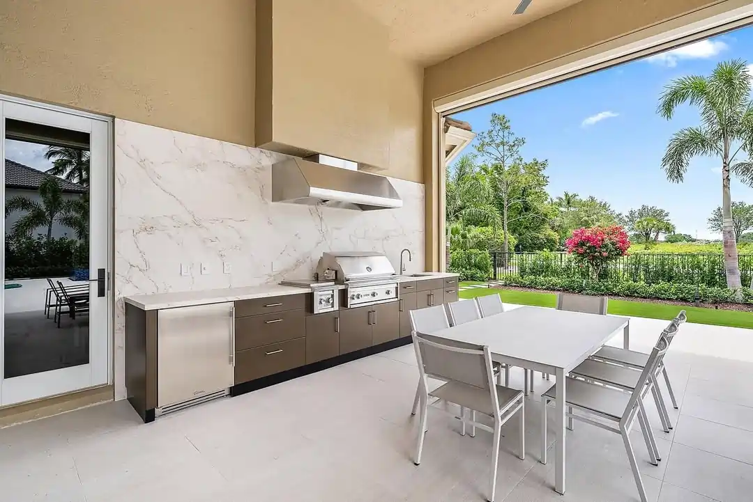 If you place the outdoor kitchen near an exterior wall, it will save you a significant amount of money because the access to electricity and plumbing will be easier if you decide you need a fridge and a sink outside. However, if your budget is tight, all you should focus on is the grill. It’s the most important appliance, and you will decide on the other amenities later on, depending on the money.